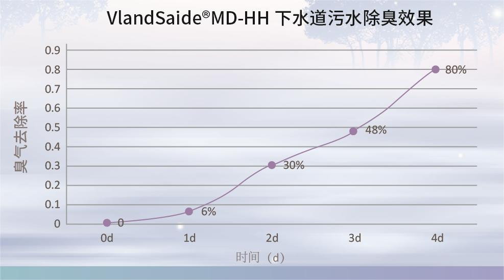 将本品直接施用于下水道,可去除80%异味;将本品应用于公共卫生间、地漏,连续喷洒3天后,臭度值可从50-60降至10。应用本品于食堂切配间、洗刷间地漏,除臭效果明显。