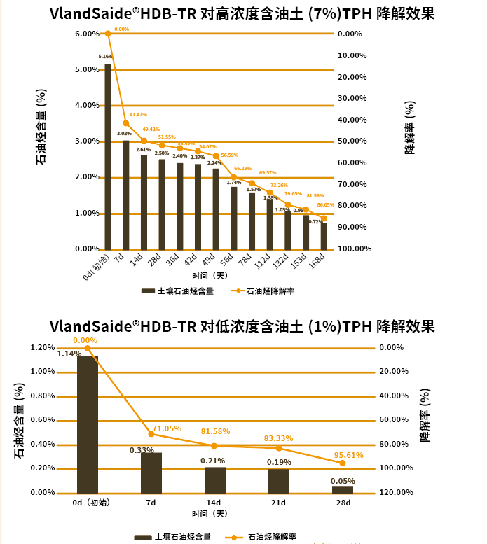 蔚蓝赛德®土壤修复用除油菌剂(VlandSaide®HDB-TR)是一款我司自主知识产权的、专注于高效降解土壤中石油烃类污染物的复合微生物制剂(发明专利号:ZL202311630368.1)。该产品能够在不同类型的污染土壤环境中快速激活自身的降解活性,高效分解土壤中的汽油、柴油、重油等各类石油烃成分,降低土壤污染程度,恢复土壤生态功能,为油田区、加油站、油库等场地的土壤修复提供高效的生物治理方案。